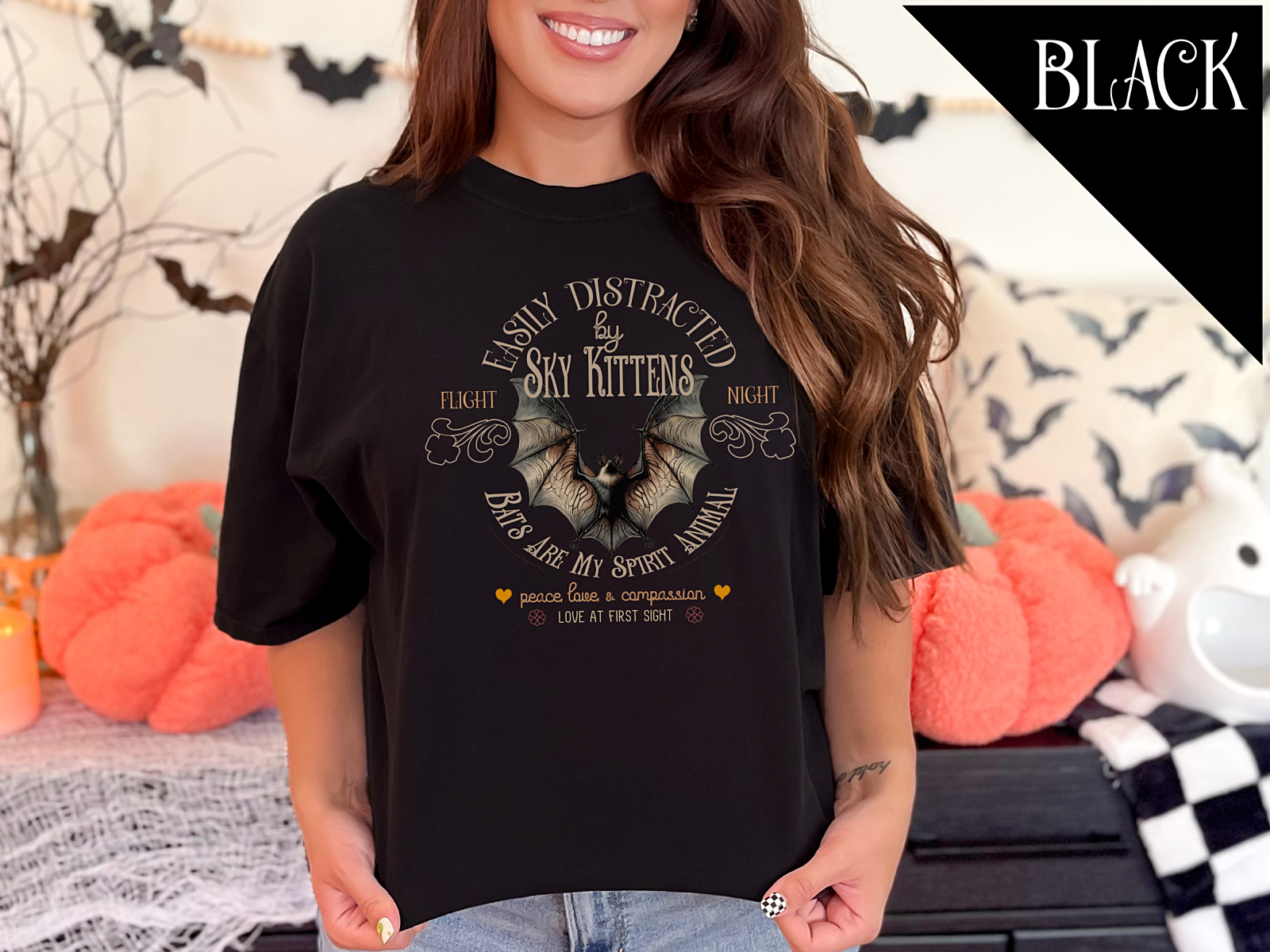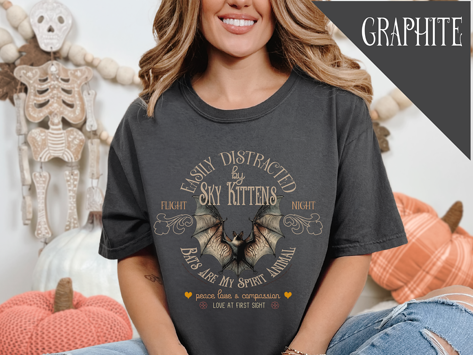 Easily Distracted by Sky Kittens Vegan Bat Tee Shirt | Halloween | Comfort Colors | Cute