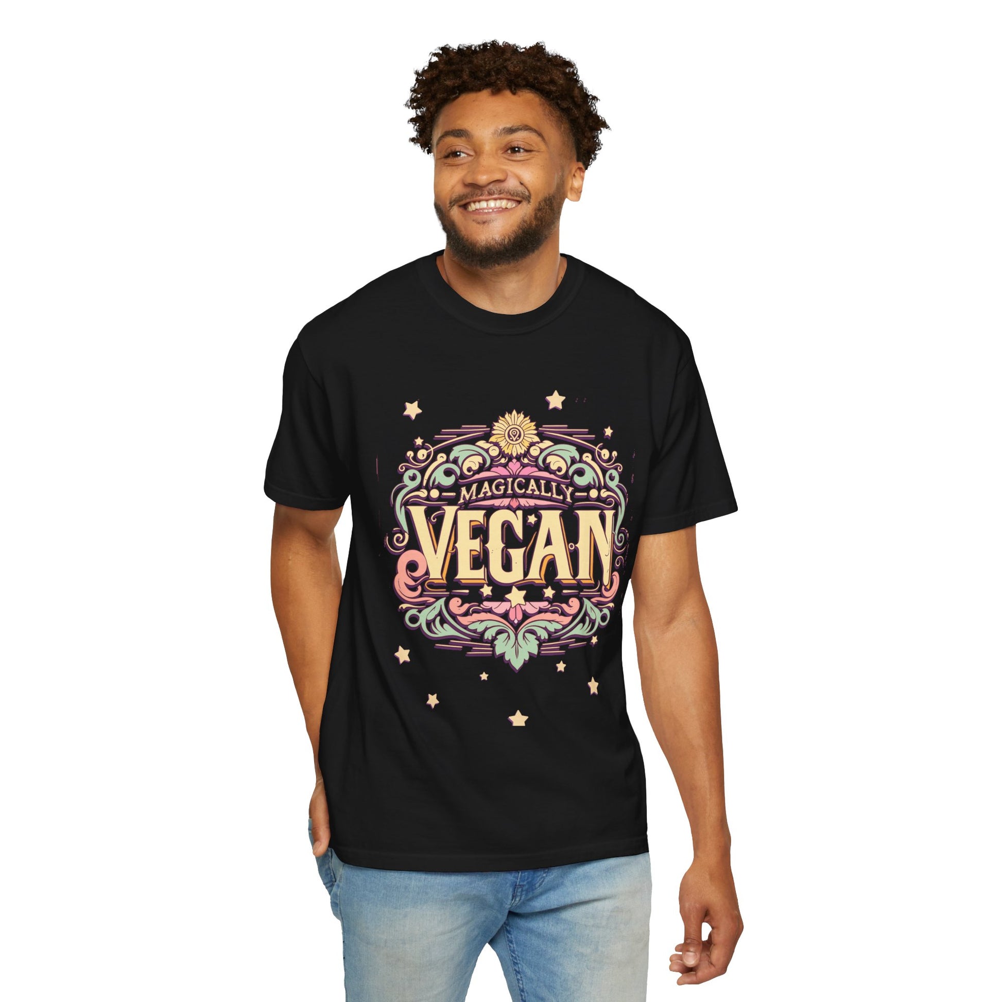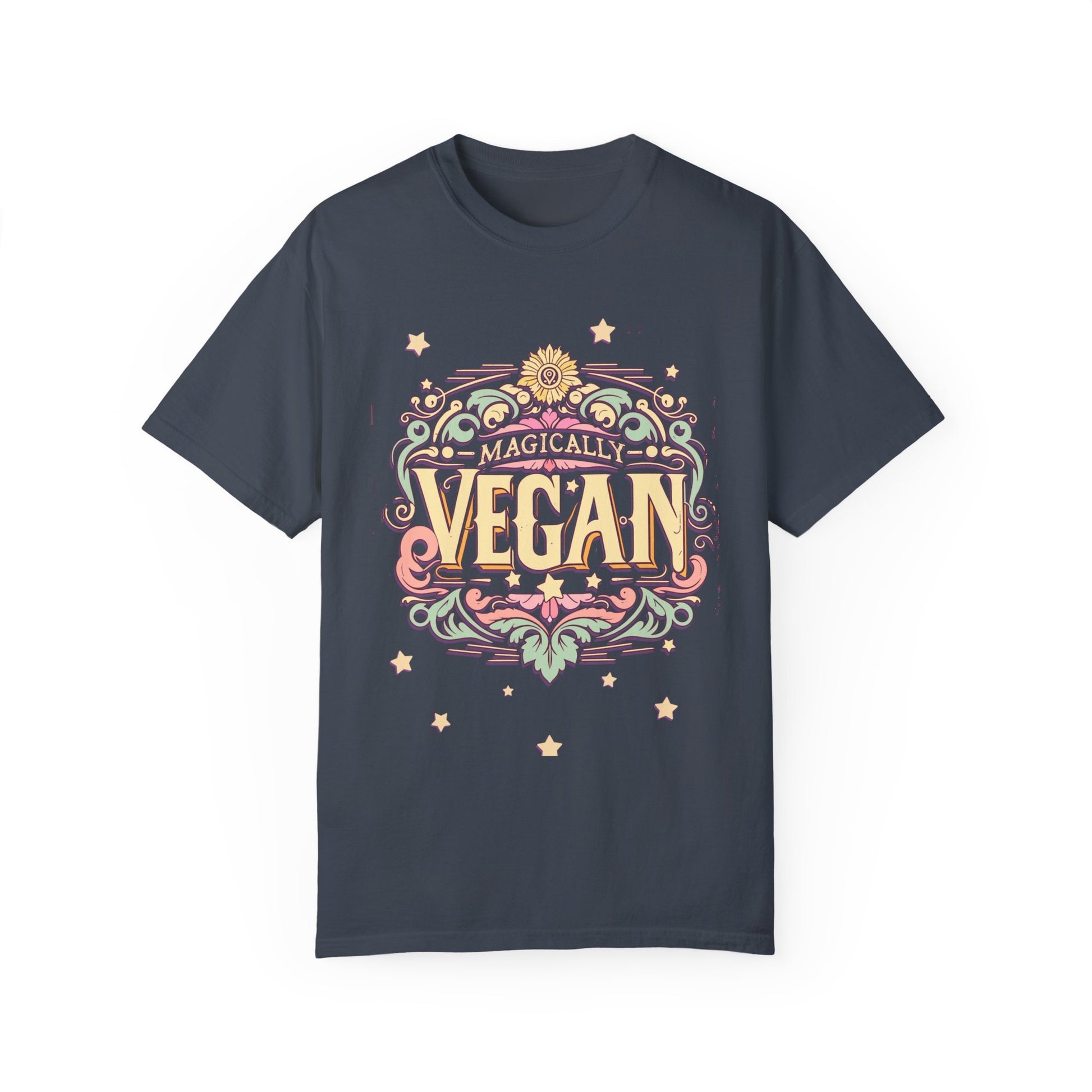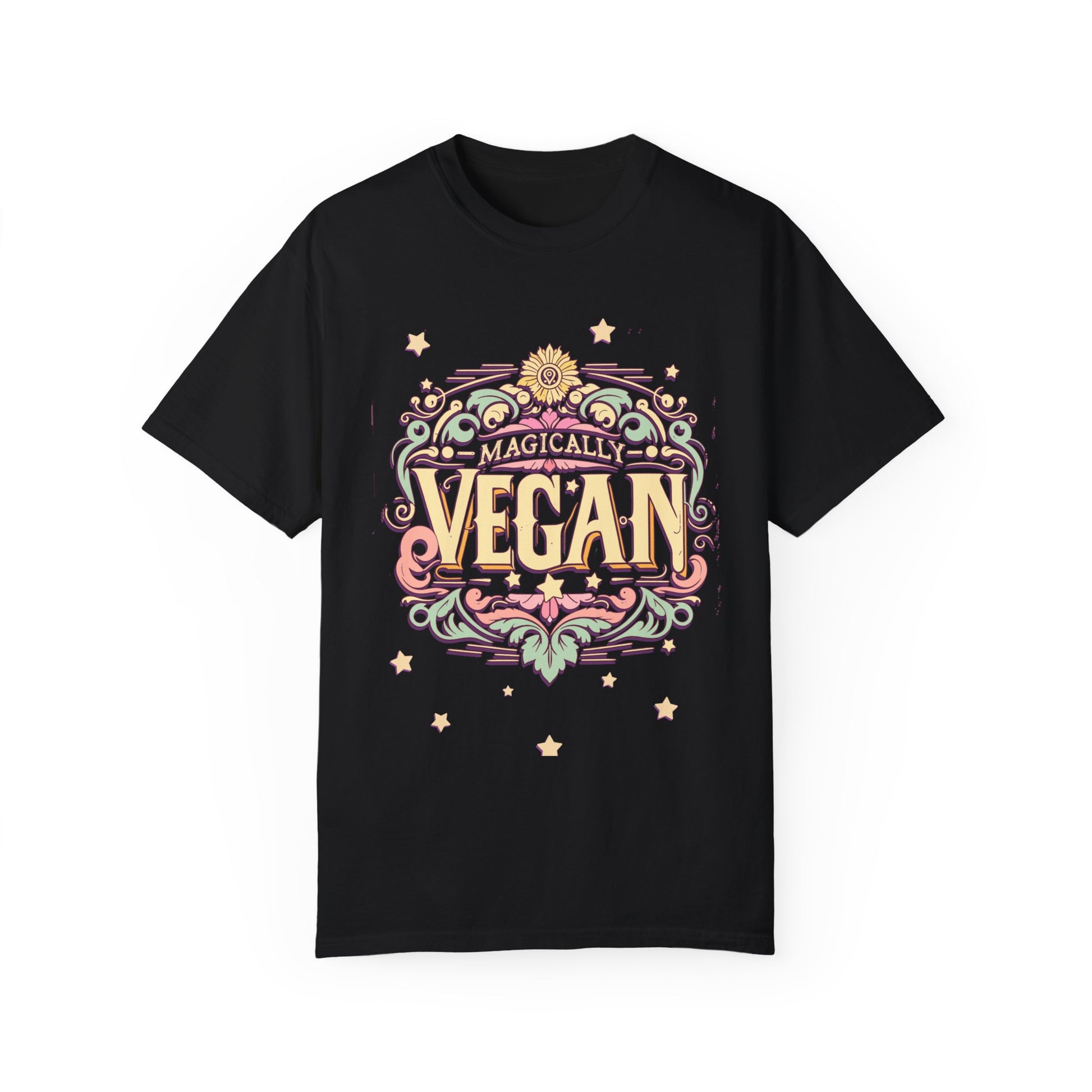 Step into the world of enchanting compassion with our "Magically Vegan" tee shirt! Crafted from premium 6 oz 100% cotton, this tee offers both style and comfort. Available in five rich, darker colors, each shirt is a statement of ethical living and kindness. Whether you're an advocate for animal rights or simply love the magic of veganism, this shirt is a must-have addition to your wardrobe. Embrace the magic of vegan living with every wear!