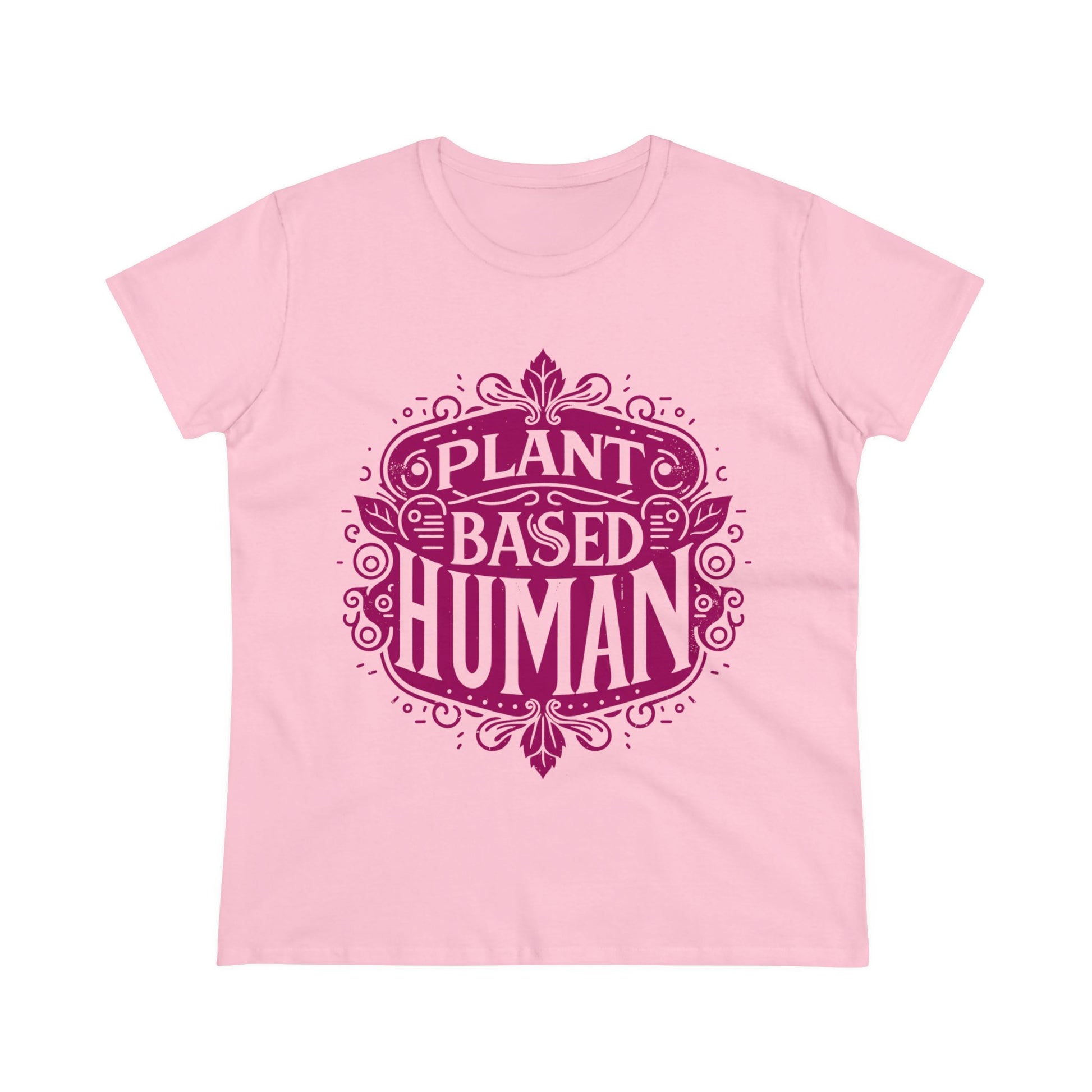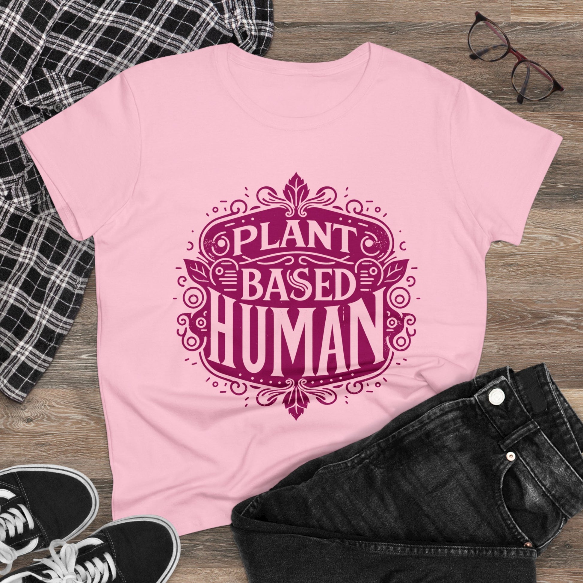 Our vibrant "Plant Based Human" tee is designed exclusively for the fierce and fabulous! Featuring bold magenta typography on ladies' cut tees, this statement piece celebrates your plant-powered lifestyle in style. Crafted for comfort and sustainability, it's perfect for everyday wear or a standout at vegan events. Embrace your ethical choices with confidence and let your tee do the talking. Join the movement towards a greener, kinder world. Shop now and make a statement with every step you take!