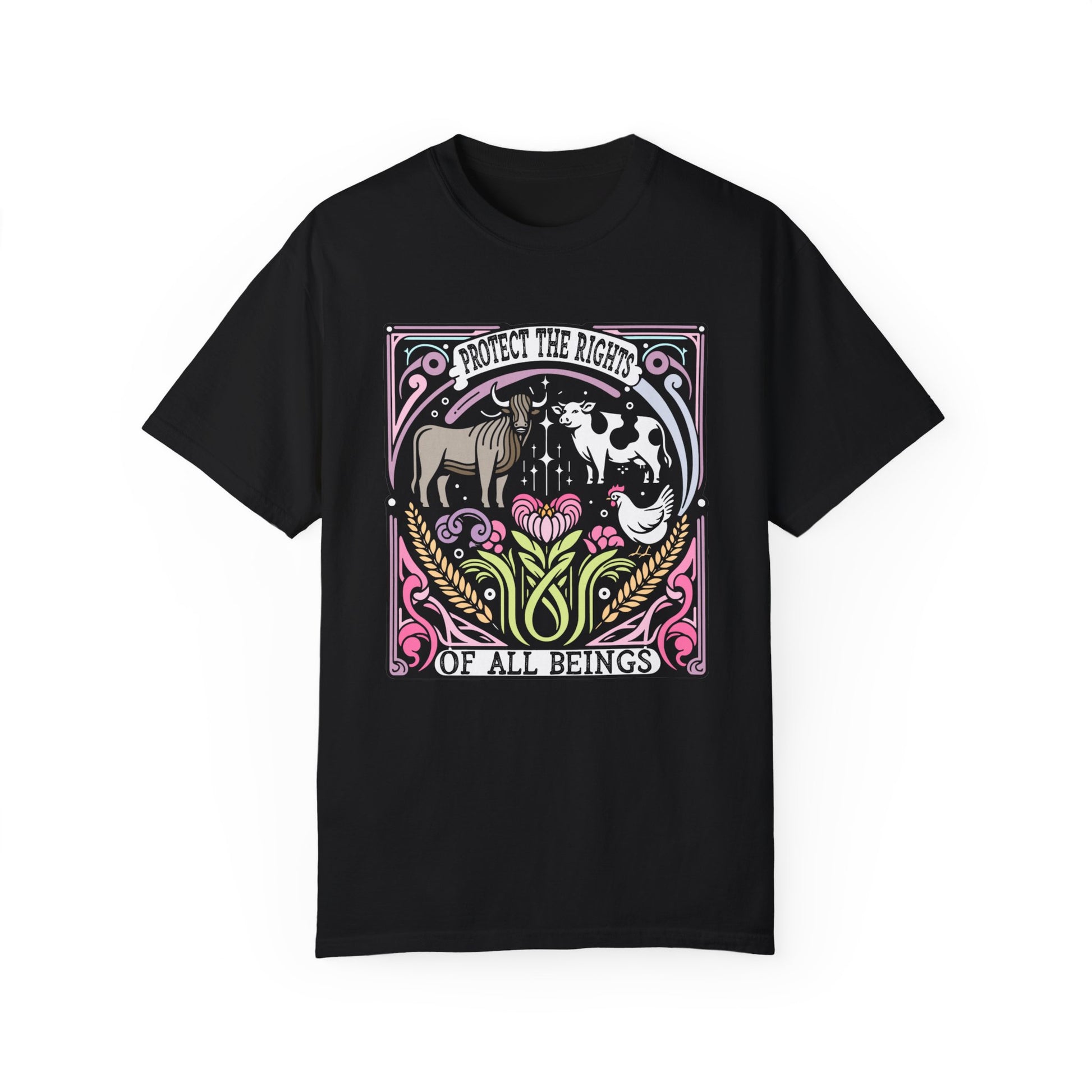 Elevate your activism with our "Protect the Rights of All Beings" t-shirt, featuring vivid tones on dark colors. Crafted from 100% ring-spun 100% cotton, it blends style with advocacy. Show your commitment to animal rights with sustainable fashion. Perfect for eco-conscious individuals, this tee amplifies your voice for the voiceless. Join the movement, make a statement, and stand for justice. Available now to empower your wardrobe and activism. Shop today and wear your values proudly. Change the world, one cute tee at a time!
