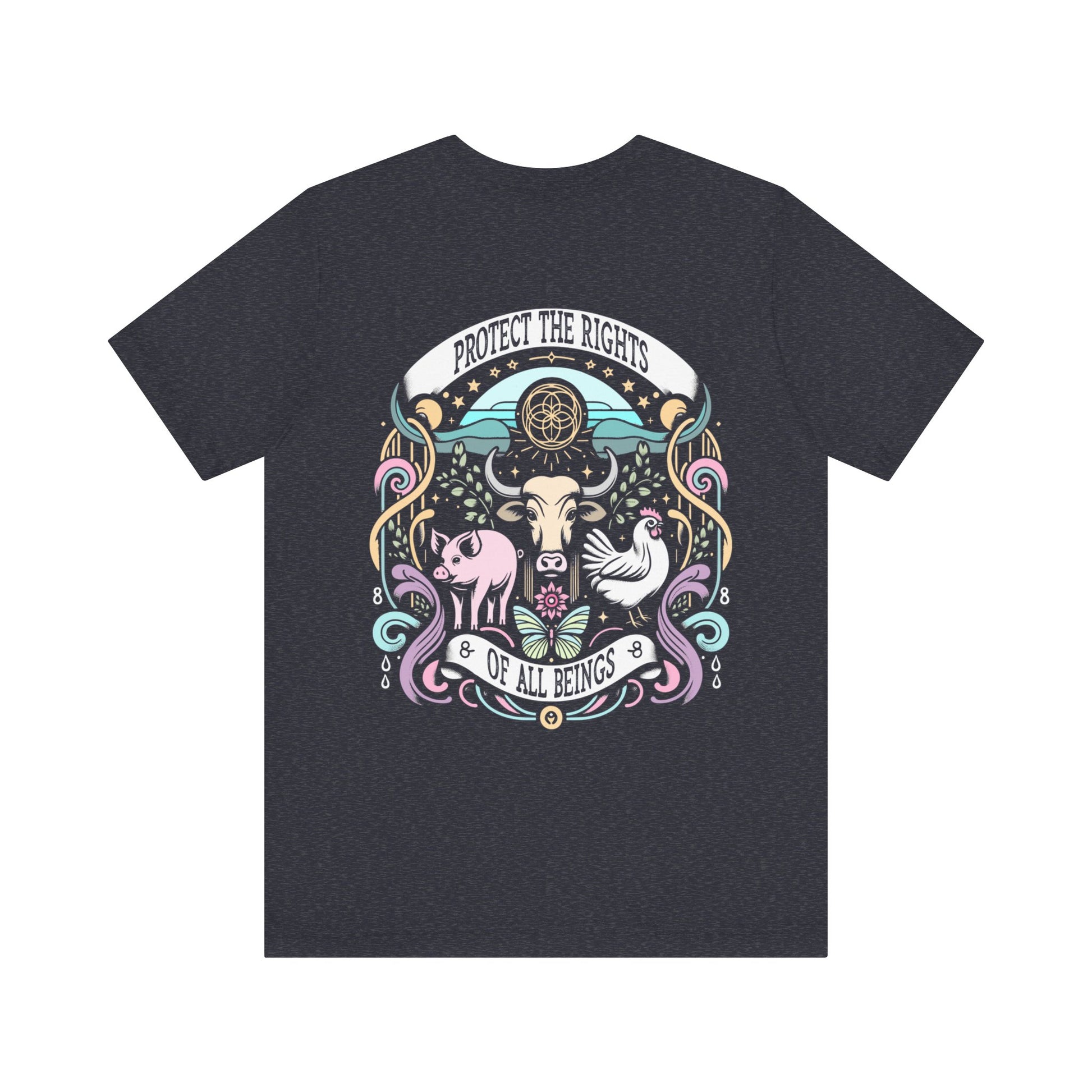 Introducing our "Protect the Rights of All Beings" vegan tee in two rich, dark, heathered hues: gray and navy. Made from premium 6 oz garment-dyed cotton, it's both comfortable and stylish. With its bold graphic advocating for equality, this tee from Cute Vegan Tees lets you express your values effortlessly. Soft and breathable, it's perfect for any occasion. Join us in promoting compassion and awareness with this statement piece. Wear it proudly and make a difference, one tee at a time.