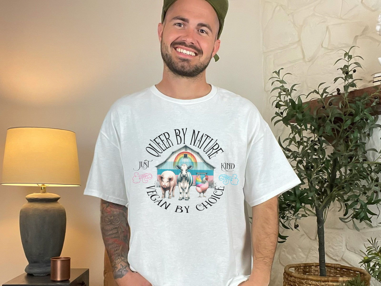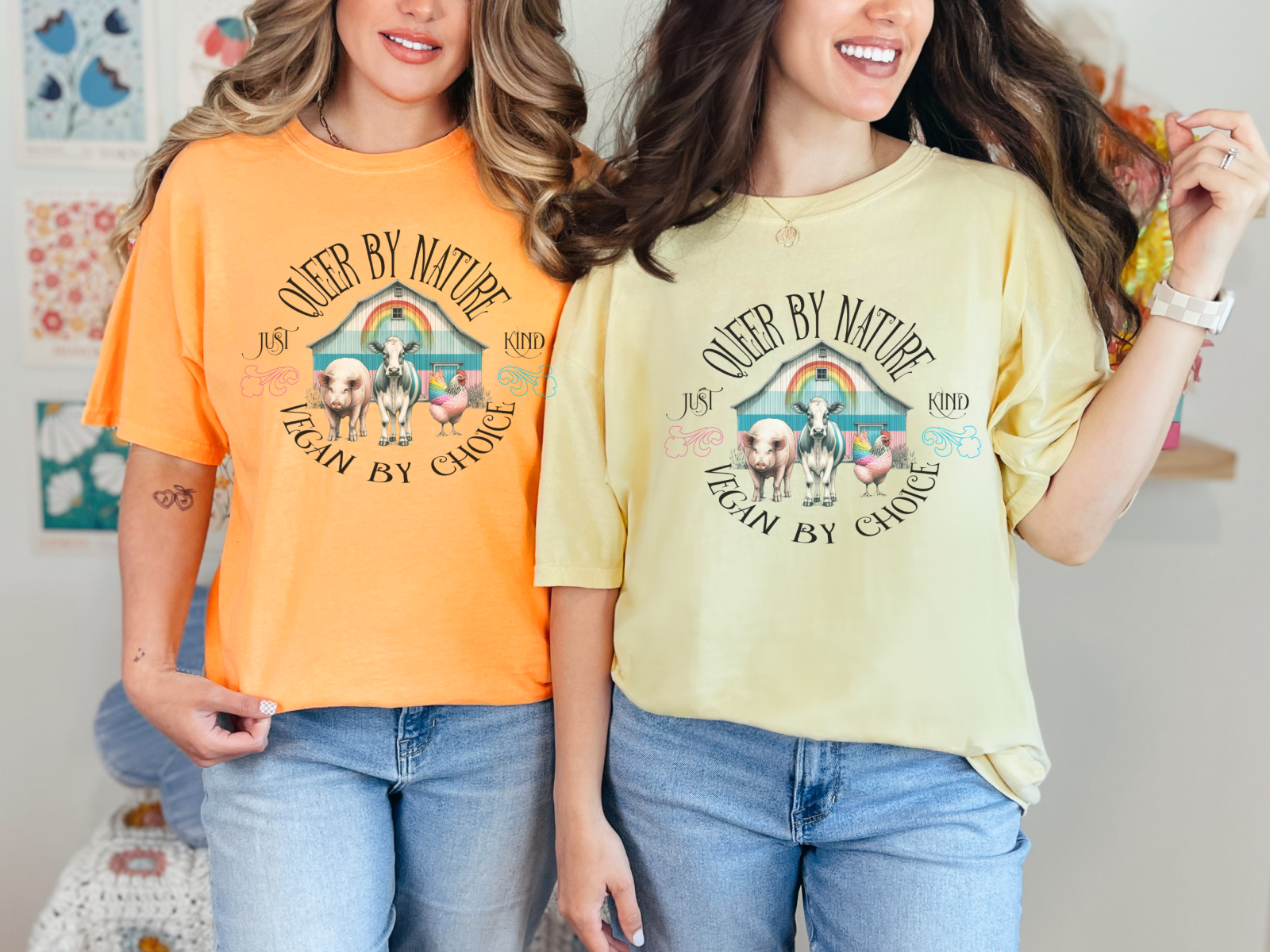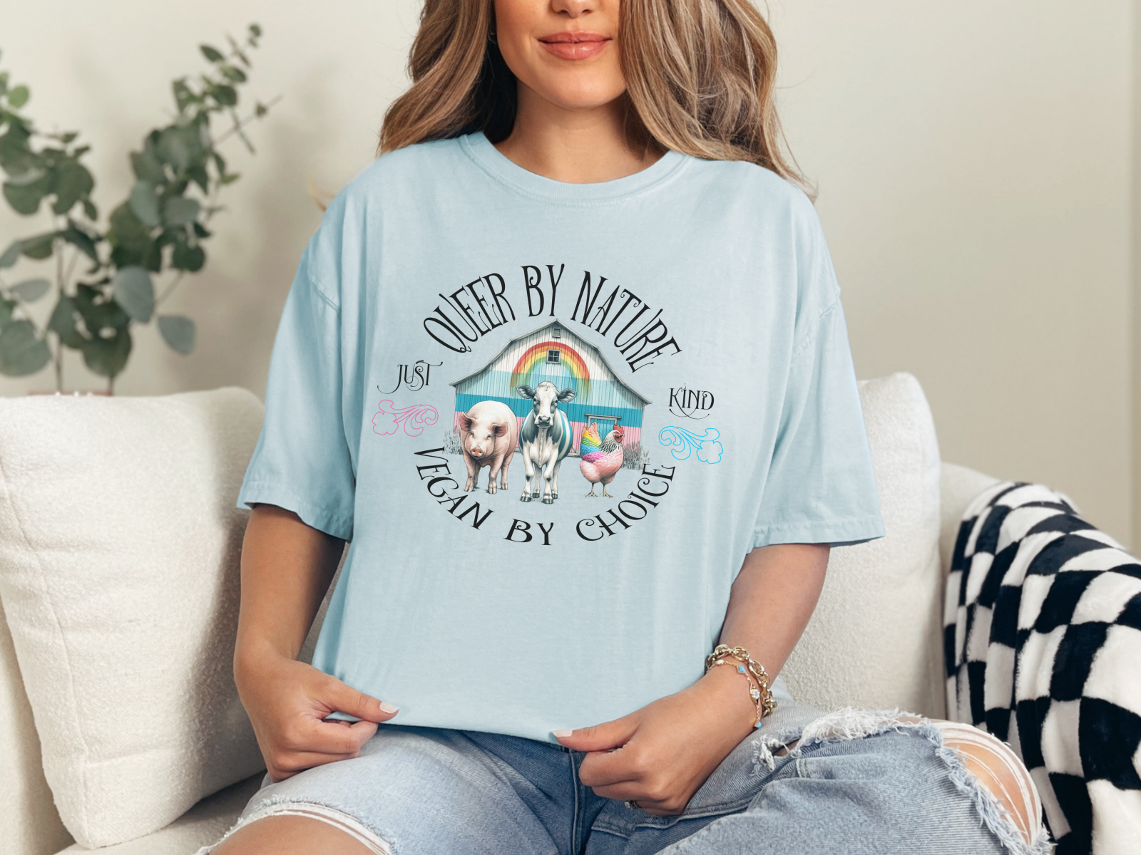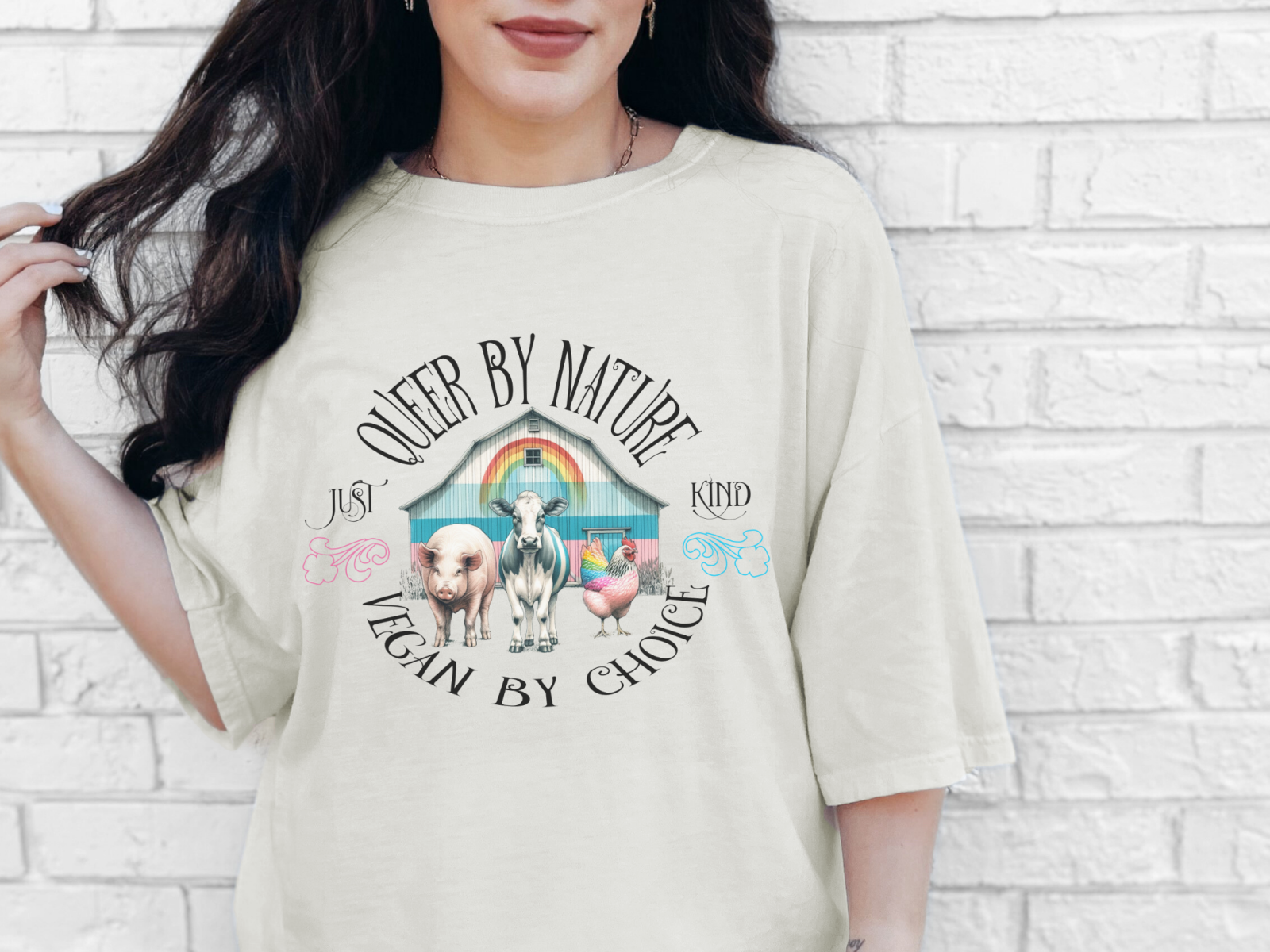 Celebrate your identity and lifestyle with our "Queer by Nature, Vegan by Choice" tee. This shirt features a vibrant design that proudly showcases your commitment to both the LGBTQ+ community and veganism. Made from soft, high-quality cotton, it offers comfort and style for everyday wear. Whether you're marching at a pride parade or enjoying a plant-based meal, this tee is perfect for expressing your values. Stand out with pride and compassion!