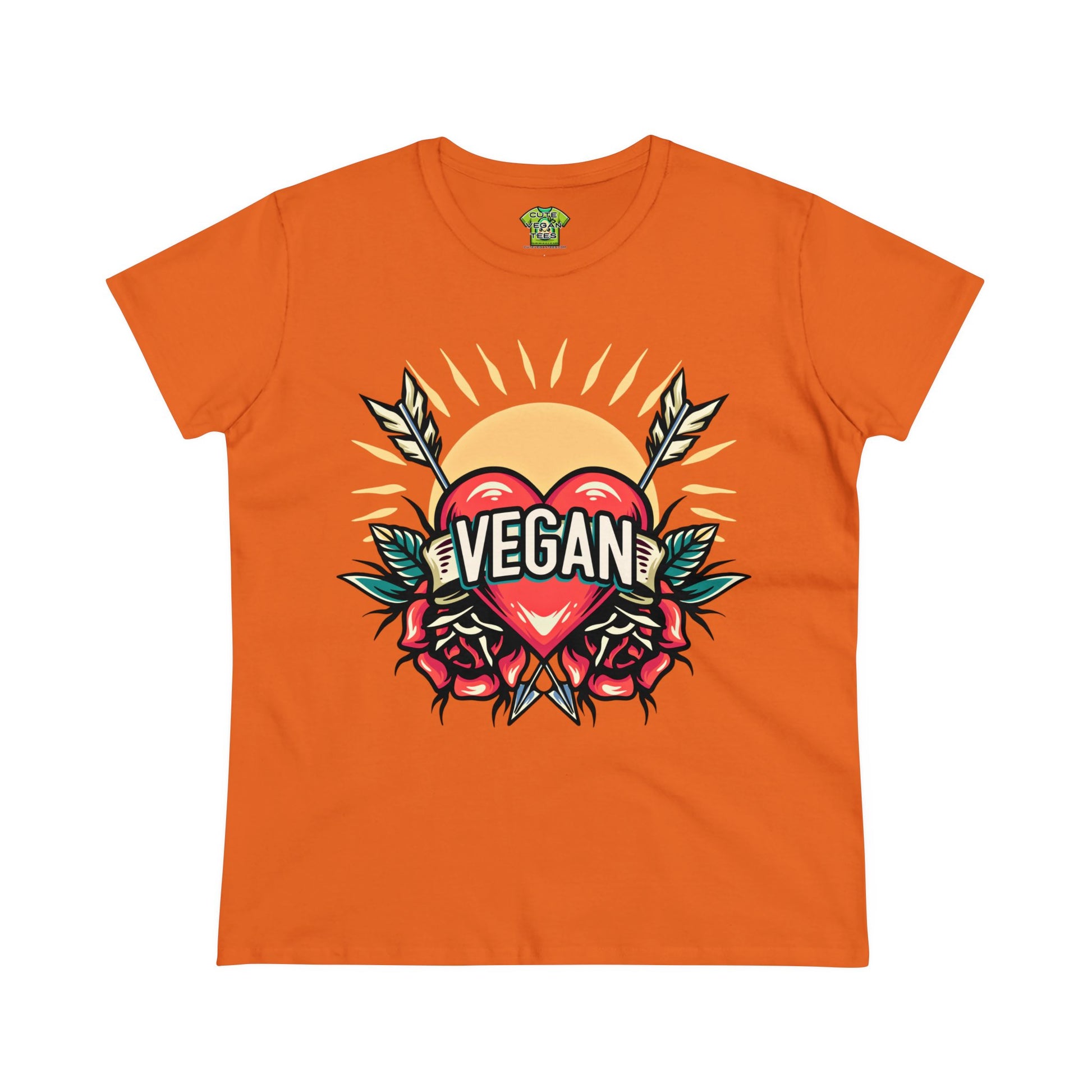 Radiate love with our 'Hearts and Arrows' tee in vibrant orange! Crafted with compassion from 100% vegan materials. Wear your heart on your sleeve and make a bold statement for kindness and ethical living. Spread positivity wherever you go with this eye-catching and eco-friendly tee.