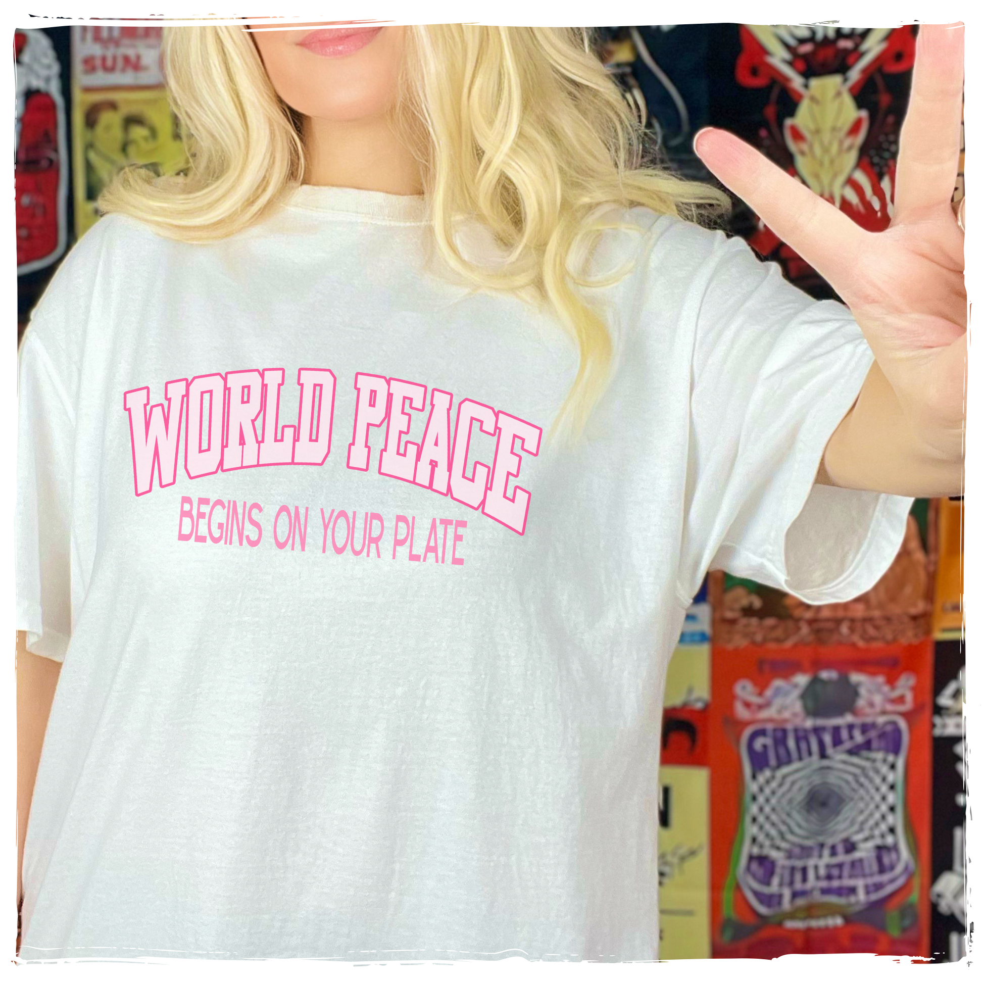 World Peace Begins on Your Plate Vegan T-Shirt {Unisex}